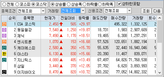 ㆍ 코스닥 : 개인(+431억원), 외국인(-265억원), 기관(-88억원)